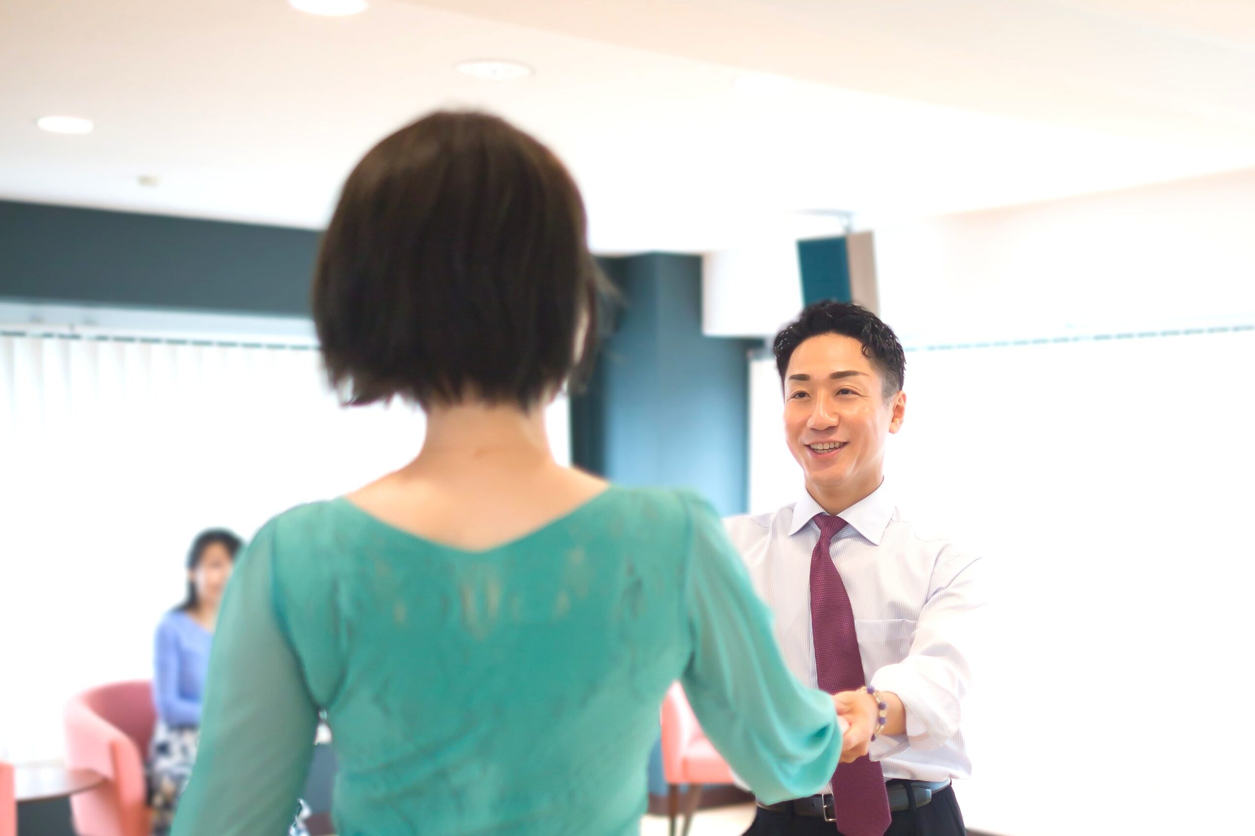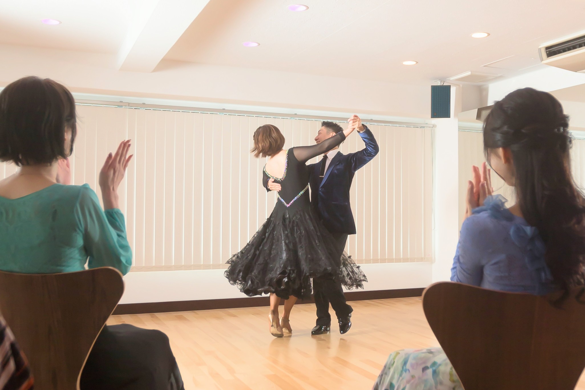 ジルバやブルースなど、初心者にもやさしい種目から始まり、音楽に合わせて身体を動かすことに慣れていきます。その後はワルツやチャチャチャなど、より動きの大きな種目に進んでいきます。